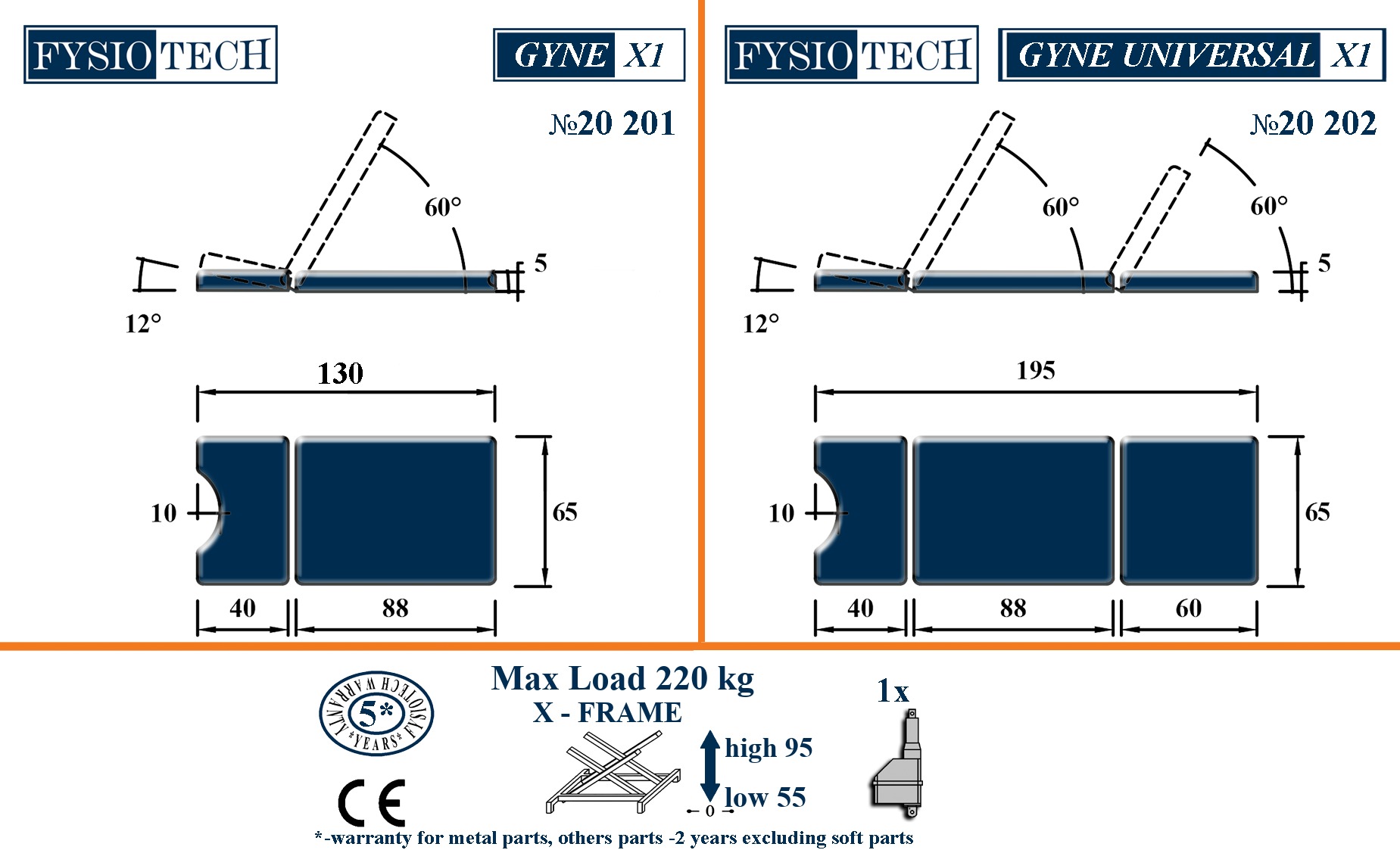 Gyne Universal X1 is a gynecological table with an electrical height adjustment. Back rest and siting sections are adjustable manually by toothed mechanism.