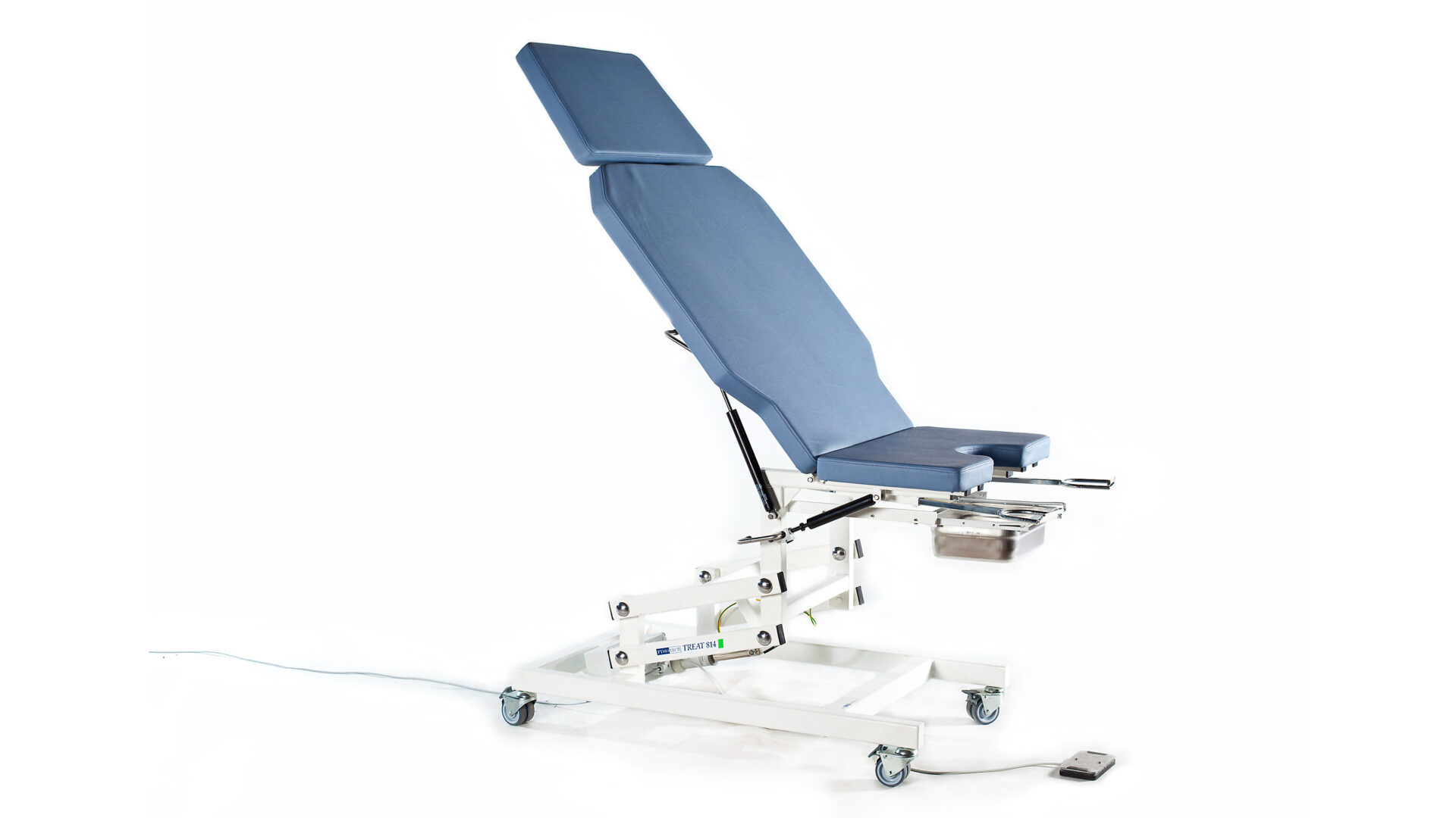 Treat-814EKG is based on a gynaecological examination table Treat 814P, but back rest has a with 85cm and the grounded steel frame of the table does not affect the image quality